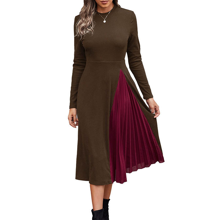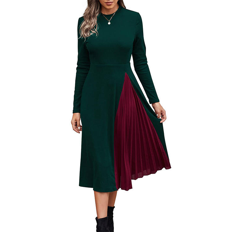 ชื่อผลิตภัณฑ์:ชุดเดรสยาวคลุมเข่าแขนยาวของผู้หญิงชุดเดรสแต่งระบายแนวเส้นถักลำลอง