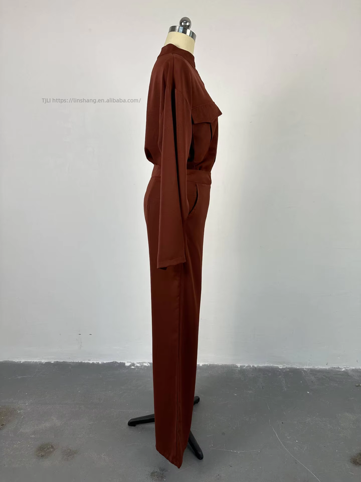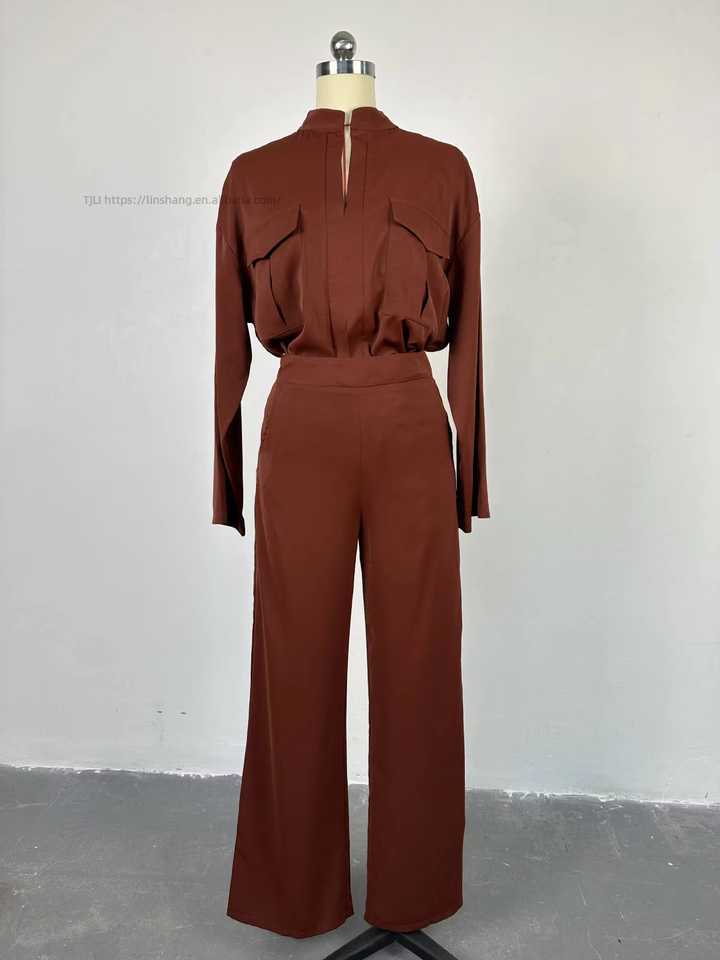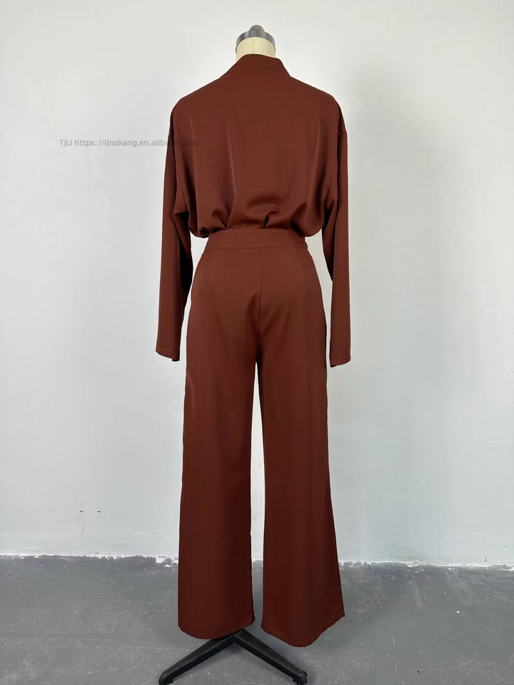 ชุดเซ็ต 2 ชิ้น เสื้อคอวีแขนยาวลำลองและกางเกงขายาวทรงกว้างสำหรับผู้หญิง คอลเลคชั่นใหม่รับฤดูใบไม้ผลิ แฟชั่น