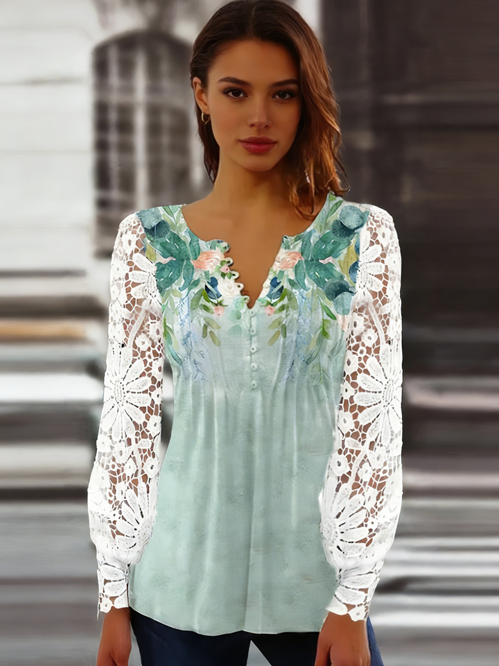 เสื้อผู้หญิงไซส์ใหญ่สำหรับฤดูใบไม้ผลิ ฤดูร้อน ฤดูใบไม้ร่วง ผ้าลูกไม้ แขนยาว คอวี ติดกระดุมด้านหน้า จับจีบ เสื้อคลุมลำลอง สวมใส่ได้ทุกวัน