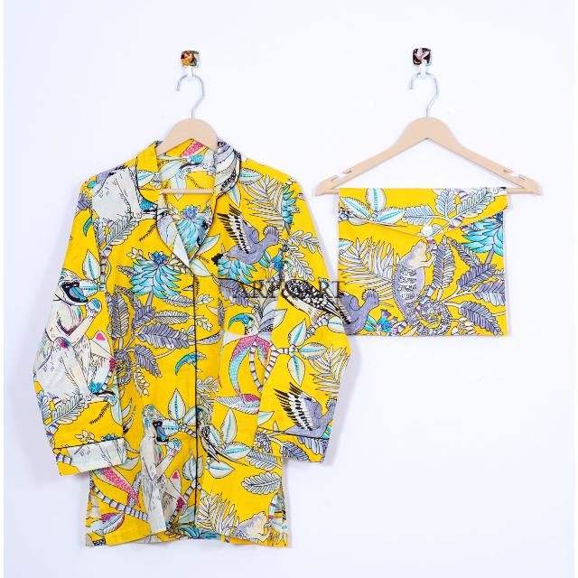 ชุดนอนผู้หญิงสำหรับฤดูใบไม้ผลิและฤดูร้อน ดีไซน์หรูหรา สวมใส่ได้ทุกวัน ผ้าฝ้ายเนื้อนุ่ม ระบายอากาศได้ดี คุณภาพสูง พิมพ์ลายด้วยมือ