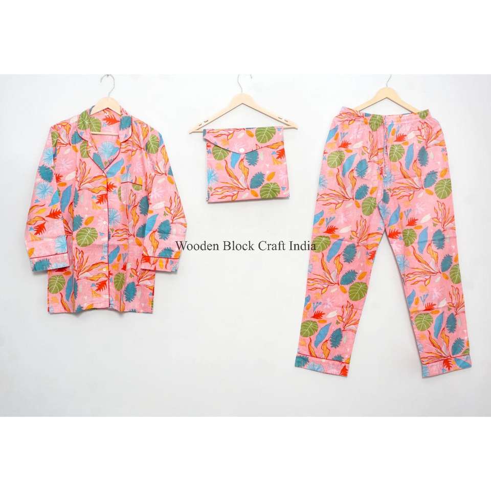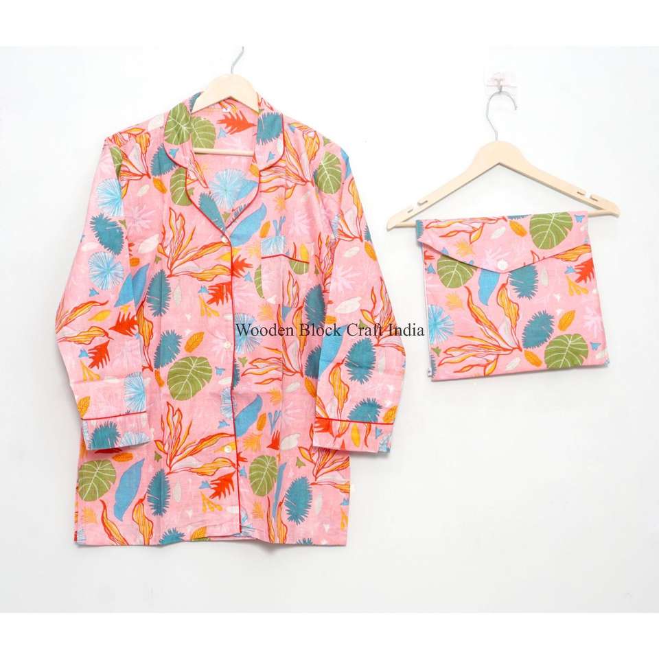 ชุดนอนผู้หญิงสำหรับฤดูใบไม้ผลิและฤดูร้อน ดีไซน์หรูหรา สวมใส่ได้ทุกวัน ผ้าฝ้ายเนื้อนุ่ม ระบายอากาศได้ดี คุณภาพสูง พิมพ์ลายด้วยมือ