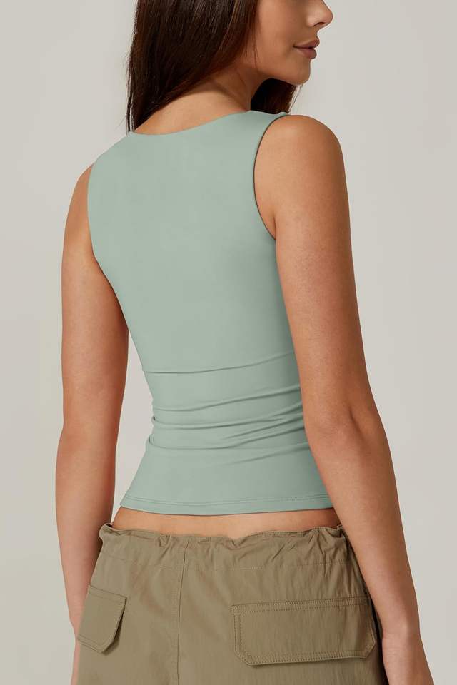 เสื้อกล้ามสองชั้นคอสี่เหลี่ยมของผู้หญิงเสื้อยืดรัดรูปพื้นฐาน