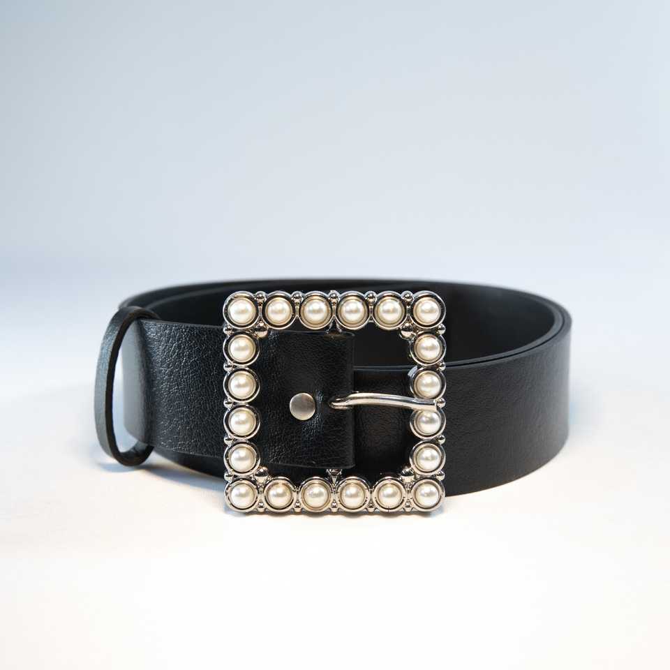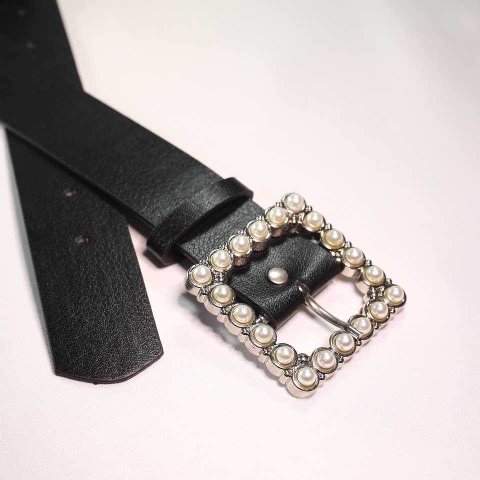 เข็มขัดหัวเข็มขัดมุกทรงสี่เหลี่ยมสำหรับผู้หญิง ทำจากวัสดุโลหะผสม