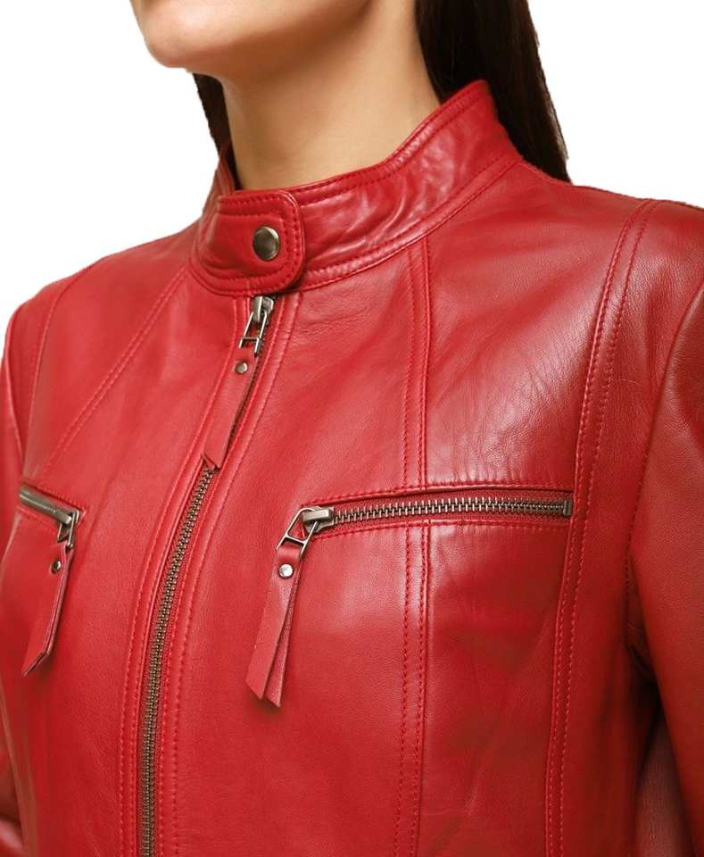แจ็กเก็ตหนังแท้คอตั้งของผู้หญิงผ้าแคนวาสสไตล์ฤดูหนาวมีซิปใหม่