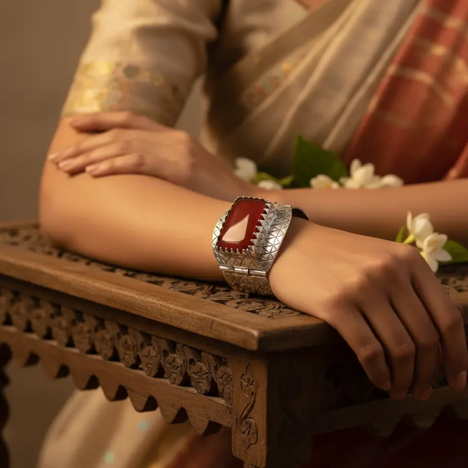 กำไลข้อมือประดับลูกปัดหินคาร์เนเลียนสีเงินสำหรับผู้หญิง พร้อมมุกและเพชร ดีไซน์หรูหรา สไตล์ศาสนา