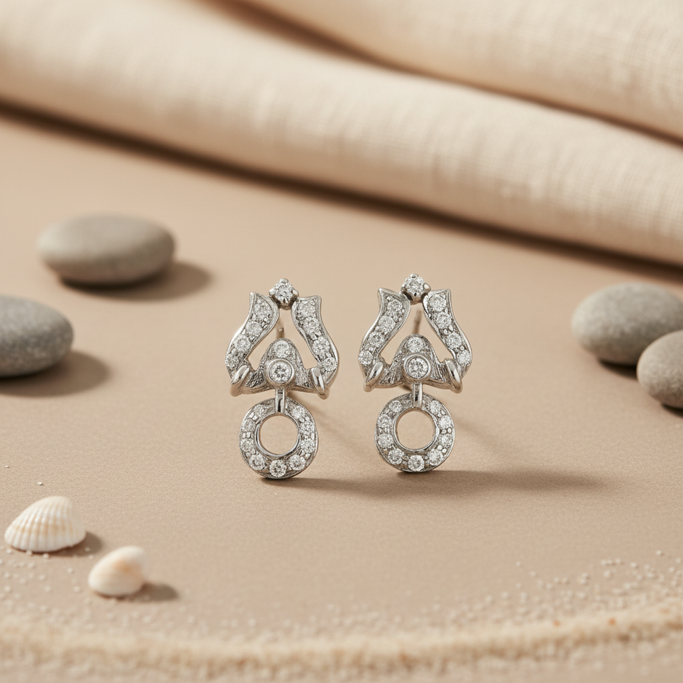 ต่างหูคริสตัลประดับเพชรคิวบิกเซอร์โคเนียสีเงินสำหรับผู้หญิง