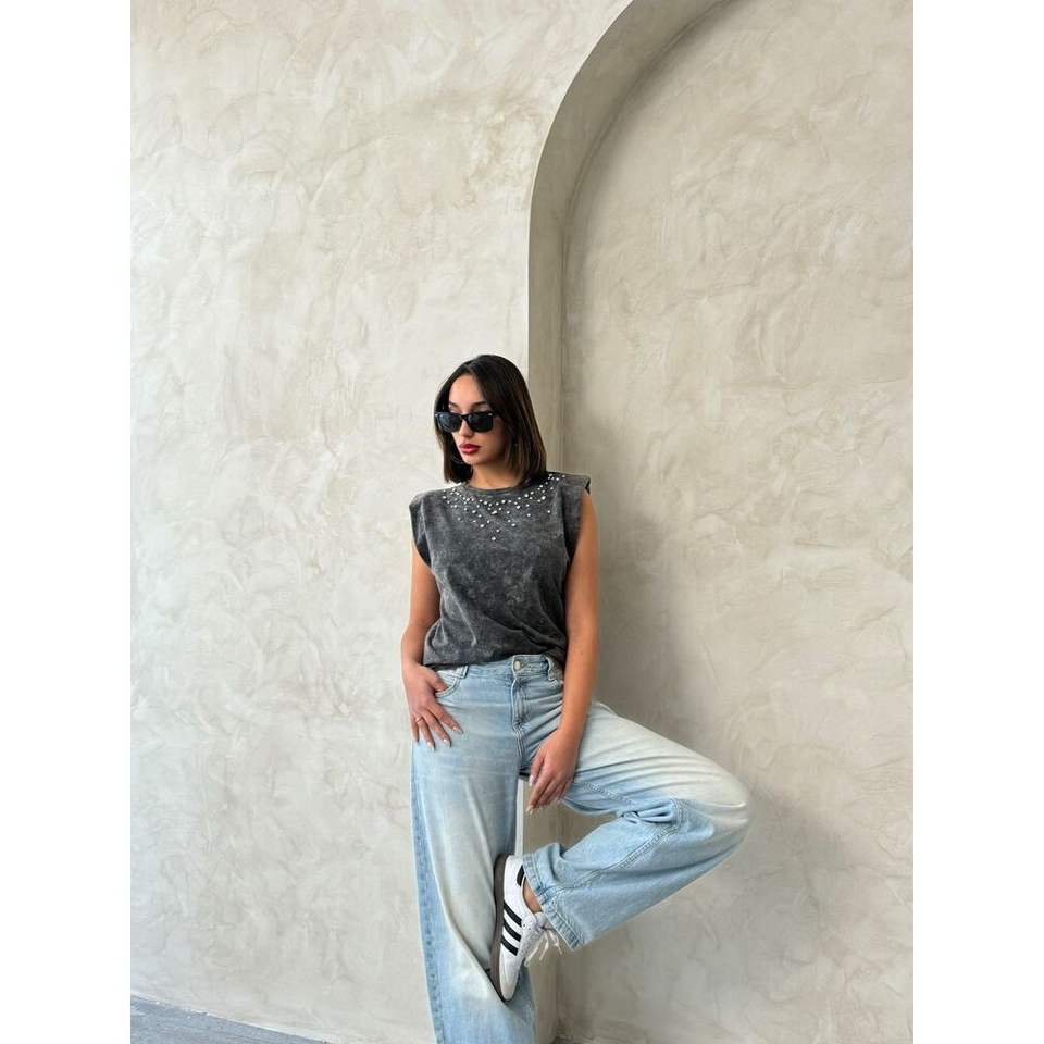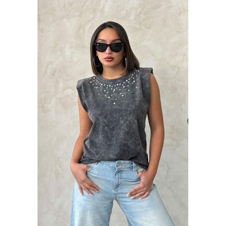 เสื้อผู้หญิงแบบมีรายละเอียดตกแต่งด้วยหิน ล้างทำความสะอาดแล้ว ขายส่ง