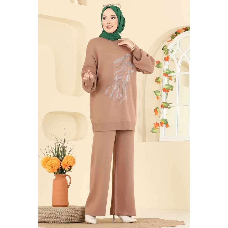 ชุดเสื้อถักประดับด้วยหินสำหรับผู้หญิง รุ่น 1106MT581-MS