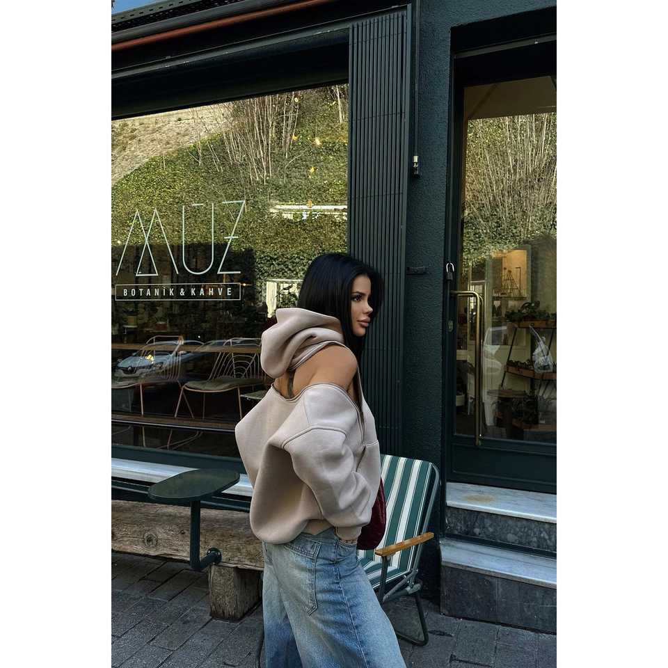เสื้อฮู้ดผู้หญิงแบบมีซิปประดับหิน พร้อมฮู้ด สวมใส่สบาย