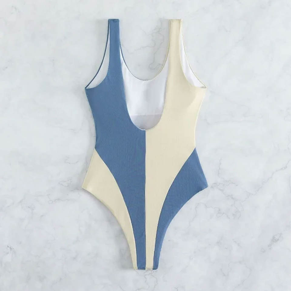 ชุดว่ายน้ำวันพีซแบบไร้สายรัดไหล่ คอลึกทรงวี ขาสูง ลายพิมพ์ ผ้ายืดสแปนเด็กซ์/ไนลอน ปรับแต่งได้ ป้องกันรังสียูวี กระชับสัดส่วน