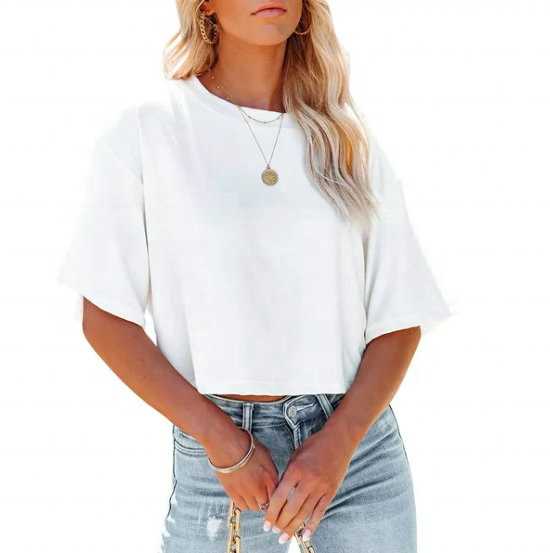 เสื้อครอปแฟชั่นสตรีทแวร์และลำลองสำหรับผู้หญิง ไซส์สั่งทำได้ ราคาถูก คุณภาพดี ขั้นต่ำในการสั่งซื้อน้อย เหมาะสำหรับใส่ในช่วงฤดูร้อน