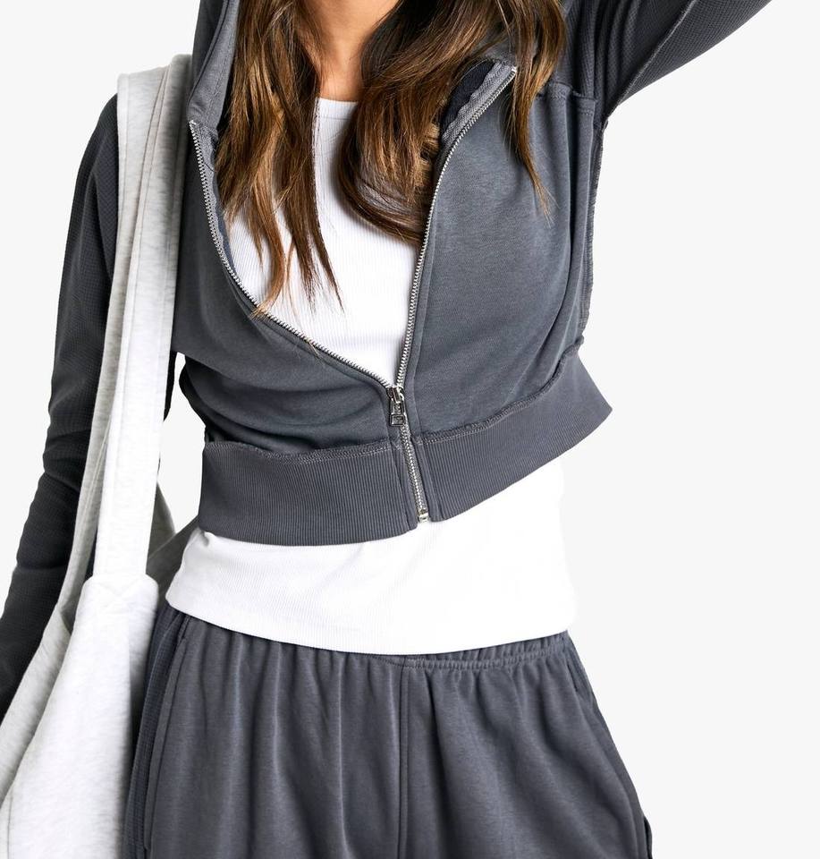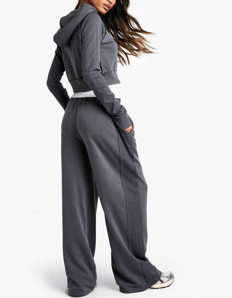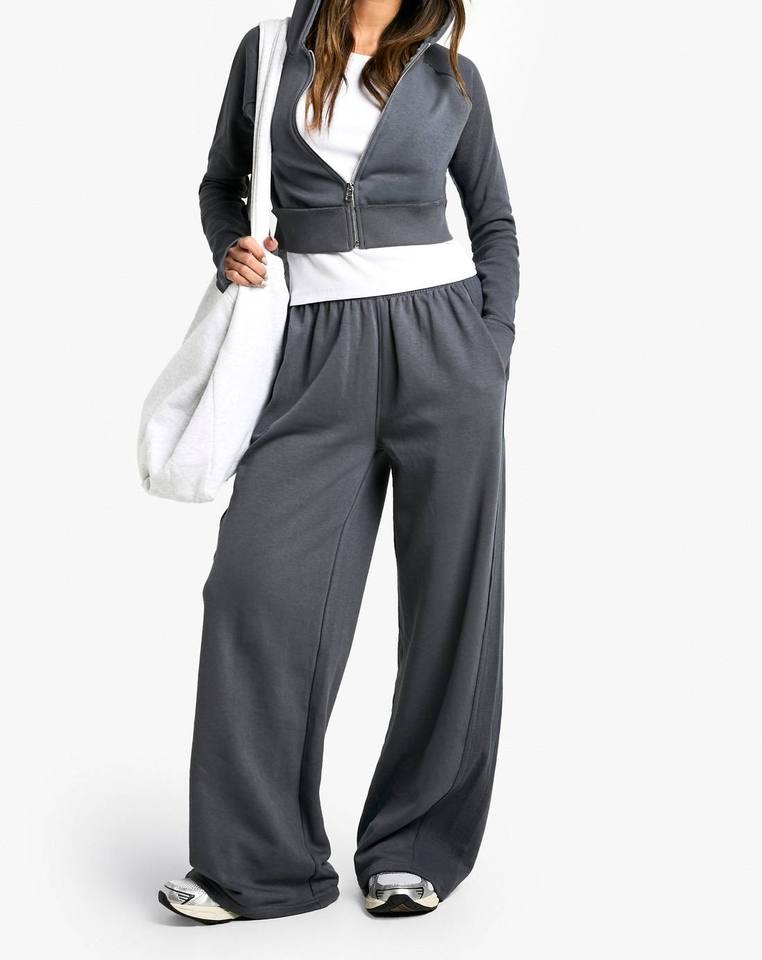 ชุดเซ็ตแทรคสูทลำลองผ้าฝ้ายฟลีซสำหรับผู้หญิง เสื้อฮู้ดซิปยาวปกติ กางเกงจ็อกเกอร์ขากว้าง ระบายอากาศได้ดี ลายพิมพ์