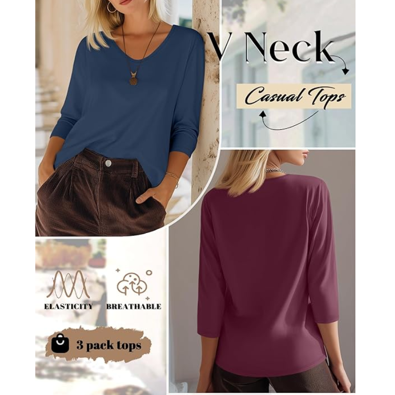 เสื้อยืดผู้หญิงแขนยาว คอกลม ผ้าริบ ยืดได้ สวมใส่สบาย สไตล์ลำลอง