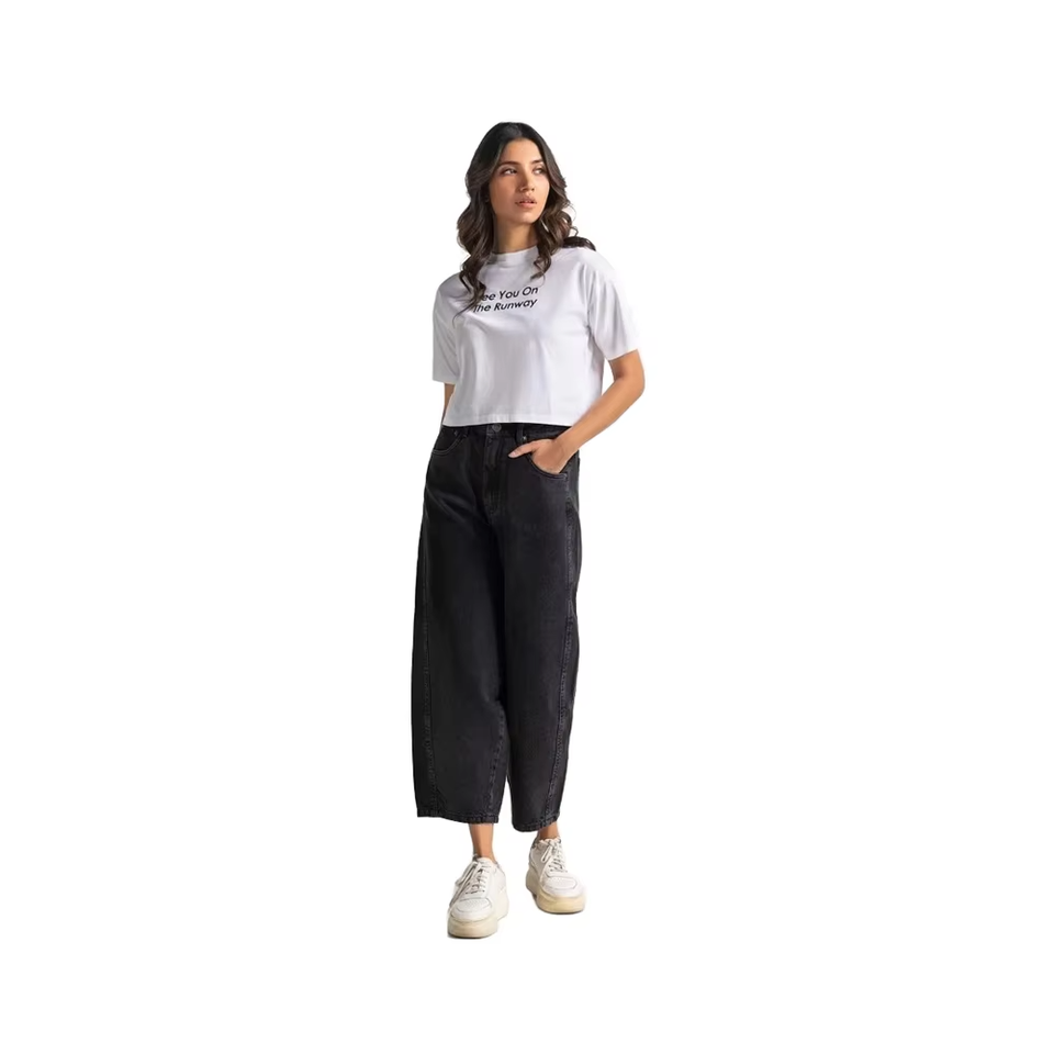 กางเกงยีนส์ขาตรงสีดำสำหรับผู้หญิงกางเกงยีนส์สีดำ