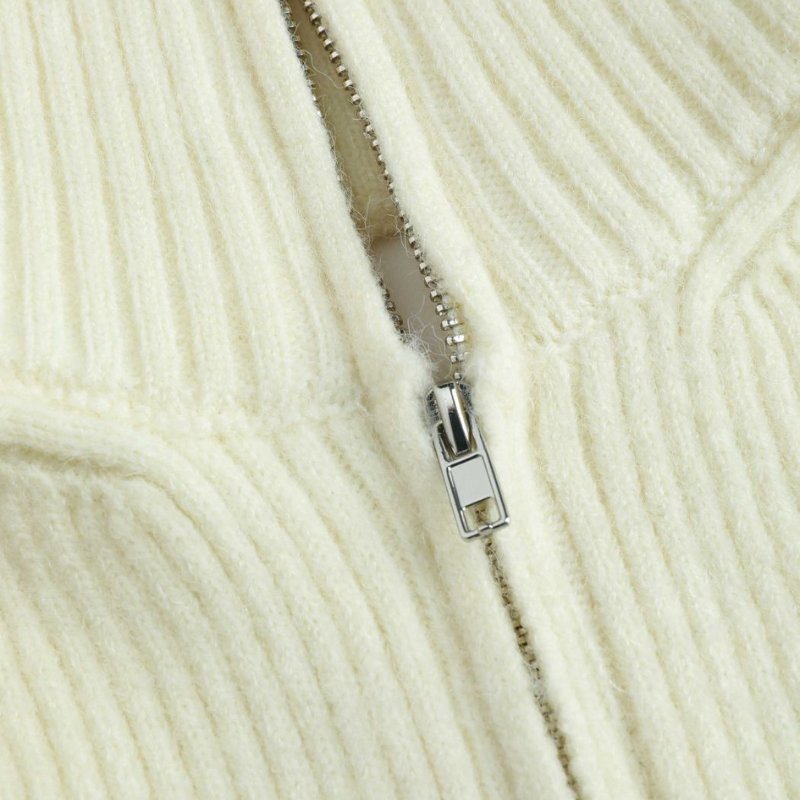 เสื้อสายเดี่ยวแบบถักสำหรับผู้หญิงยืดได้และนุ่มมีซิปปิดยาวสั้นลายทางสำหรับฤดูหนาว