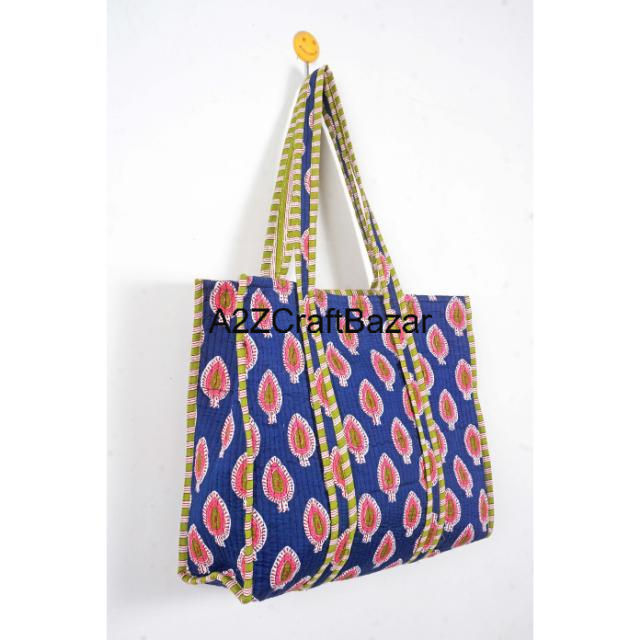 กระเป๋าผ้าฝ้ายลายทางสำหรับผู้หญิง ขนาดใหญ่ (>50 ซม.) หูหิ้วยาว สำหรับไปทะเล ท่องเที่ยว งานปาร์ตี้ จัดเก็บของ และงานแสดงสินค้า ราชสถาน A2ZCraftBazar