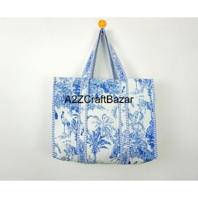 กระเป๋าผ้าฝ้ายลายทางสำหรับผู้หญิง ขนาดใหญ่ พร้อมหูหิ้วยาว สำหรับเดินทาง ชายหาด จัดเก็บ และงานแสดงสินค้า Rajasthan A2ZCraftBazar