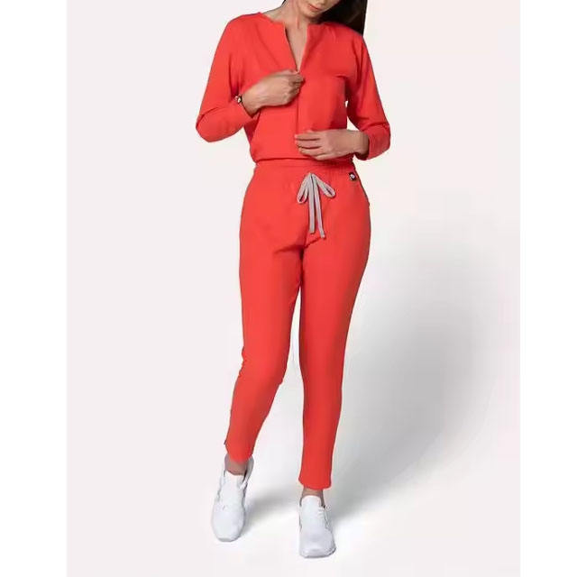 ชุดยูนิเซ็กซ์ทันสมัยและสวมใส่สบาย ชุดพยาบาลถักนิตติ้ง ระบายอากาศได้ดี ยืดหยุ่นได้ เหมาะสำหรับงานด้านการแพทย์ ชุดยูนิฟอร์มสำหรับบุคลากรทางการแพทย์ โรงพยาบาล