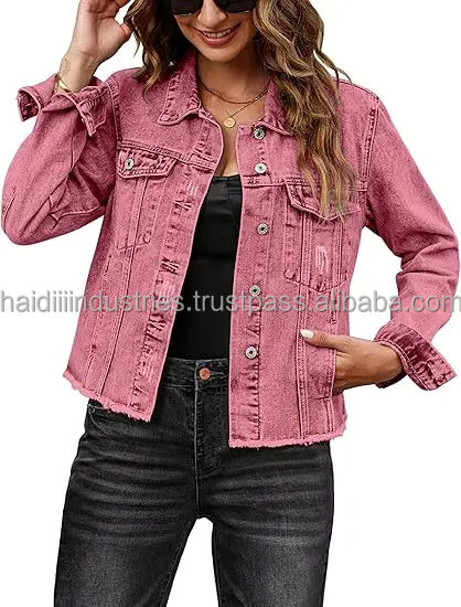 แจ็คเก็ตยีนส์ดิบสไตล์ผู้หญิง ใส่สบาย แขนยาวไนลอน บุผ้าฝ้าย ดีไซน์ฤดูหนาวล่าสุด บริการ OEM ราคาถูก ปี 2026