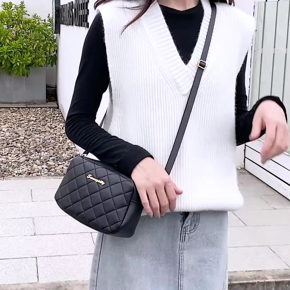 Women's Stylish Crossbody Shoulder Bag with Chain Small Square Check Solid Zipper for Spring Summer Autumn Winter-Made of PU