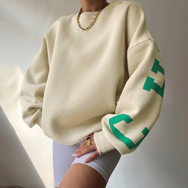 เสื้อสเวตเตอร์โอเวอร์ไซส์มีสไตล์ของผู้หญิงกันเปื้อนแห้งเร็วระบายอากาศได้ดีวัสดุคอตตอนขนแกะอบอุ่น3D ยาวพิมพ์ลายมีฮู้ด