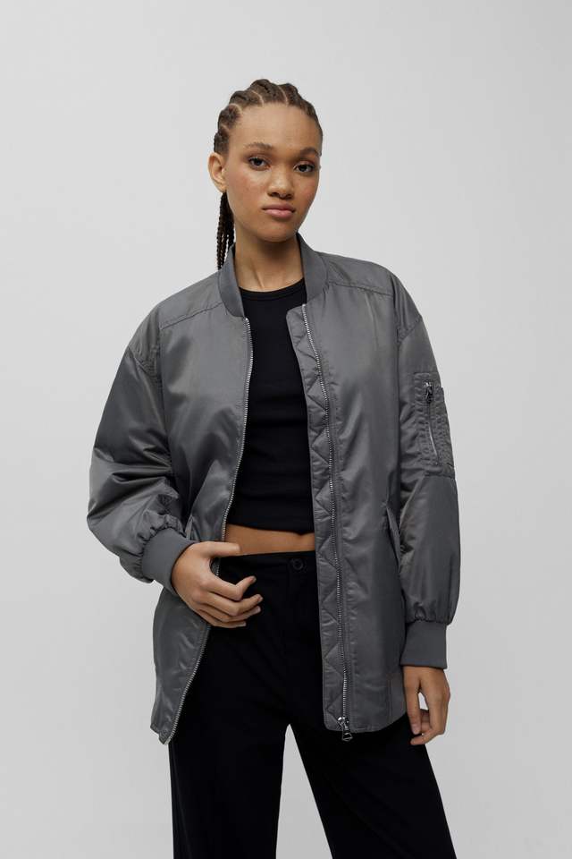 แจ็คเก็ตบอมเบอร์ทรงยาวแบบมีซิปเต็มตัวสำหรับผู้หญิง ไซส์พลัส ทันสมัย ระบายอากาศได้ดี แห้งเร็ว เป็นมิตรกับสิ่งแวดล้อม เหมาะสำหรับฤดูร้อนและฤดูหนาว สินค้ามาใหม่