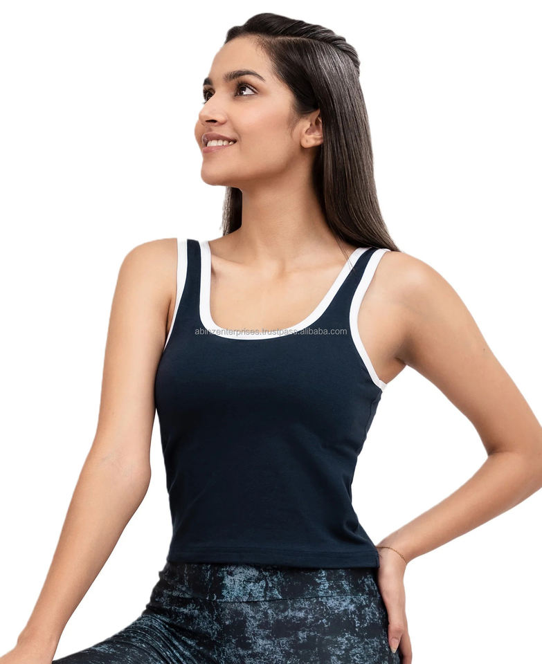 เสื้อกล้ามคอตตอนไร้รอยต่อสำหรับผู้หญิงเสื้อคอตตอนสีพื้นมีโลโก้ด้านหน้า XS ไซส์เสื้อกีฬาแบบถักสั้น