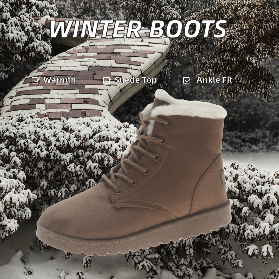 รองเท้าบูทผู้หญิงแฟชั่น หนังกลับ สไตล์ลำลอง สำหรับฤดูหนาว ความสูงระดับกลางข้อเท้า พื้น PVC สวมใส่ง่าย บุผ้ากำมะหยี่ รองเท้าบูทกันหิมะ 1 ชิ้น/ถุง OPP 1
