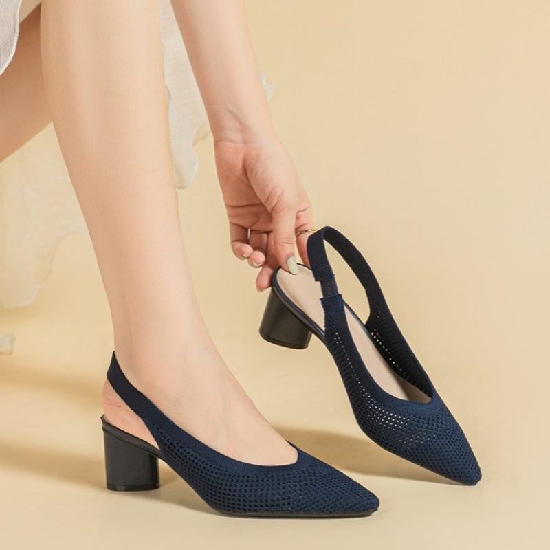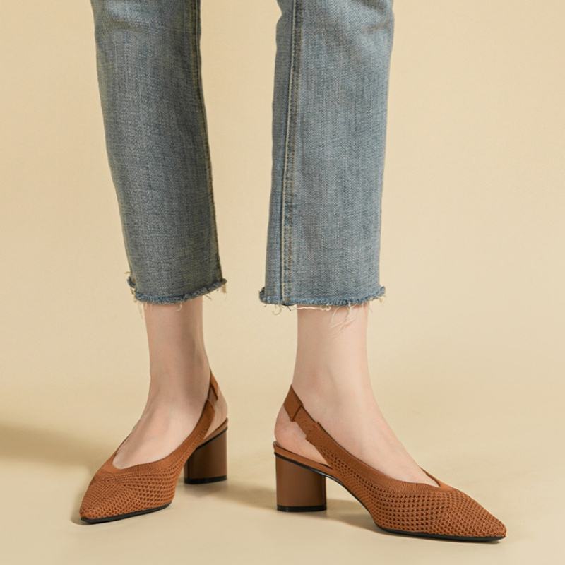 รองเท้าแตะส้นเหลี่ยมมีสไตล์ของผู้หญิงระบายอากาศได้ดีหัวแหลมผ้าตาข่ายสวมใส่สบายทันสมัยสำหรับฤดูใบไม้ผลิฤดูร้อนฤดูใบไม้ร่วงส้น5ซม.