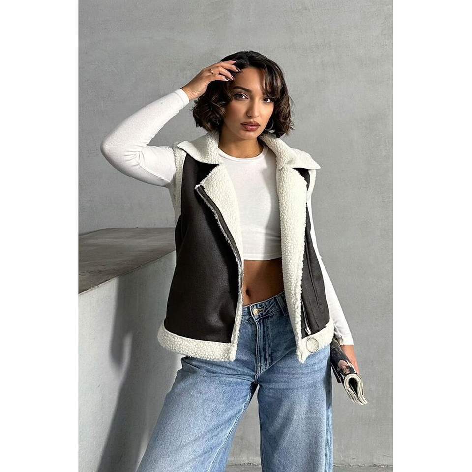 Women's Suede Collar Fur-Lined Vest Wholesale Product
