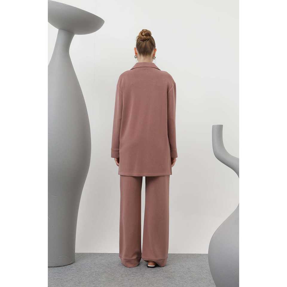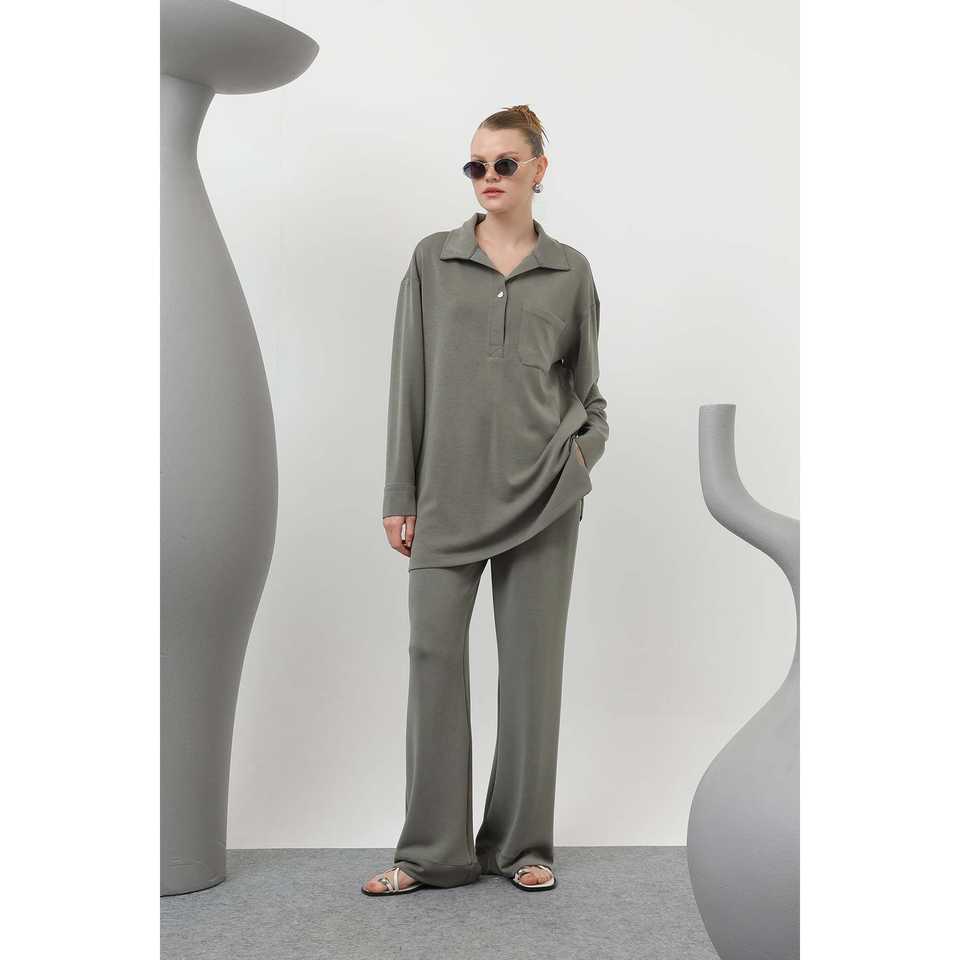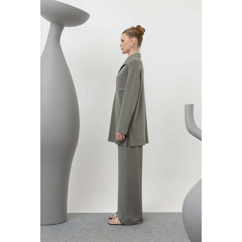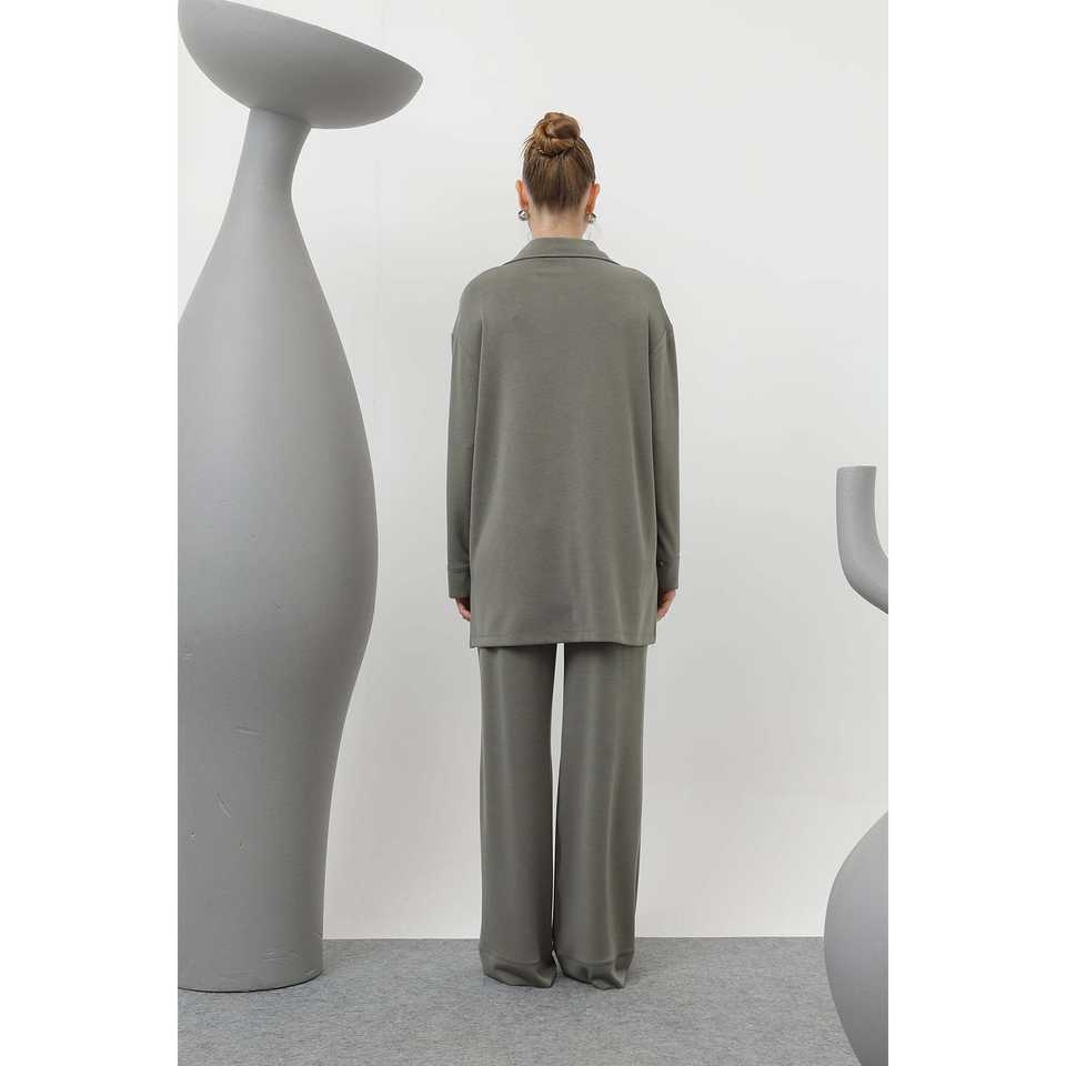 ชุดสูทผู้หญิง สีแอนทราไซต์ กระดุมแป๊ก คอปก มีกระเป๋า รุ่น 20605TKS