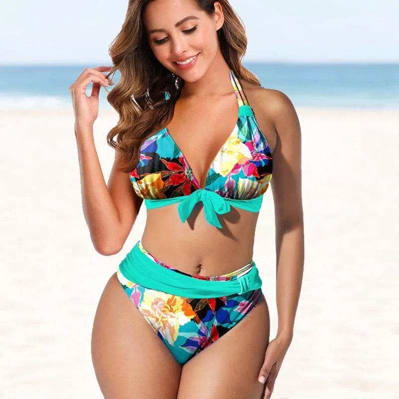 Women's Summer 2025 Floral Bikini Set Striped Swimsuit Two-Piece Beachwear Low Waist Wire-Free Support XL XXL Made Polyester