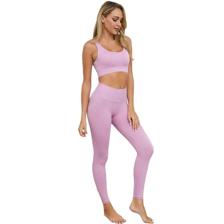 เสื้อผ้าโยคะฟิตเนสของผู้หญิงแห้งเร็วระบายอากาศได้ดีเข็มขัดด้านหน้าแบบเอวปานกลาง2ชุด2025ฤดูร้อน
