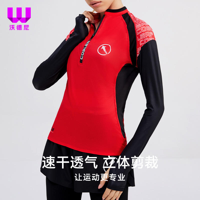 เสื้อแอคทีฟแฟชั่นสำหรับผู้หญิงใส่ในฤดูร้อนเสื้อยืดแขนยาวพิมพ์ลายสีแห้งเร็วมีซิปครึ่งตัว