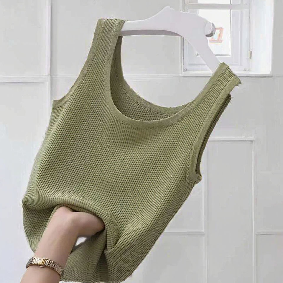 เสื้อกล้ามผู้หญิงทรงพื้นฐานสำหรับฤดูร้อน ผ้าสแปนเด็กซ์/คอตตอน ยืดหยุ่น ไร้แขน คอกลม ตัดเย็บเรียบ สีพื้น ระบายอากาศดี สไตล์ลำลอง ความยาวสั้น ด้านหน้าผ้าสแปนเด็กซ์/คอตตอน