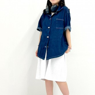 เสื้อยีนส์แขนสั้นสีน้ำเงินสำหรับผู้หญิงใส่ในฤดูร้อนสไตล์ร่วมสมัยยีนส์คลาสสิก