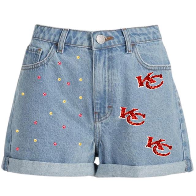 Products Name:Game Day Denim Shorts Sequin Embroidered