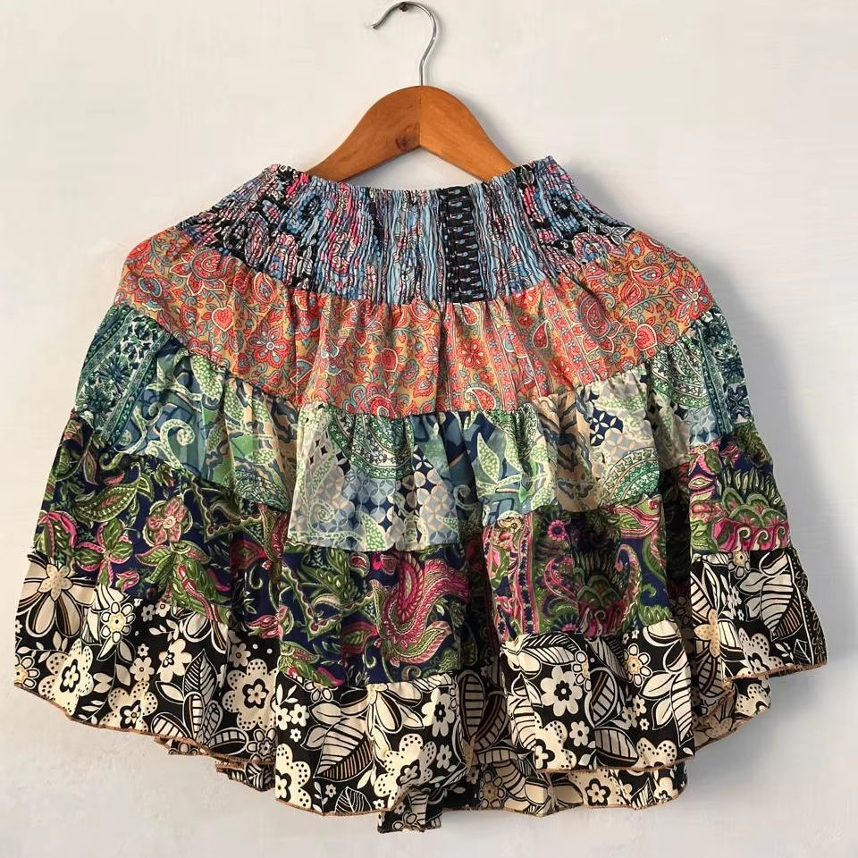 ชุดเดรสสำหรับเทศกาลฮิปปี้ประดับดอกไม้แบบลำลองสำหรับผู้หญิงใส่ในฤดูร้อนกระโปรงผ้าไหมขนาดเล็กสไตล์โบฮีเมียนฉัตรไหลยาวสบาย