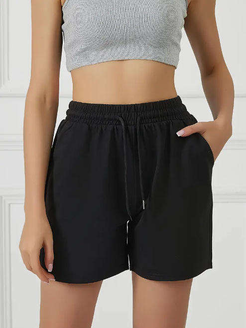 กางเกงขาสั้นเอวสูงแบบผูกเชือกลำลองของผู้หญิงฤดูร้อน