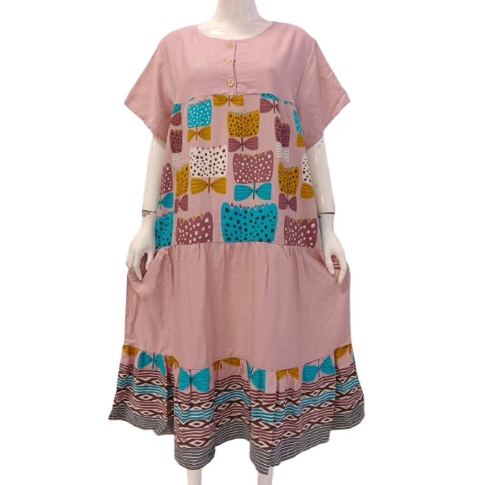 ชุดนอนลำลองสำหรับผู้หญิงลายดอกไม้ แขนสั้น คอทรงโอ ผ้าเนื้อนุ่ม ใส่สบาย เหมาะสำหรับชีวิตประจำวัน ความยาวระดับเข่า เอวยางยืด