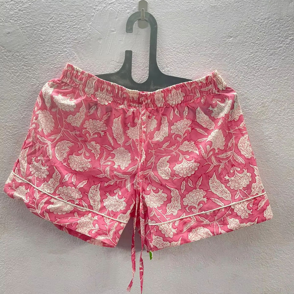Women's 100% Cotton Knitted Medium Wash Summer Casual Green Leaf Floral Printed Shorts Lightweight Breathable Beachwear Tropical