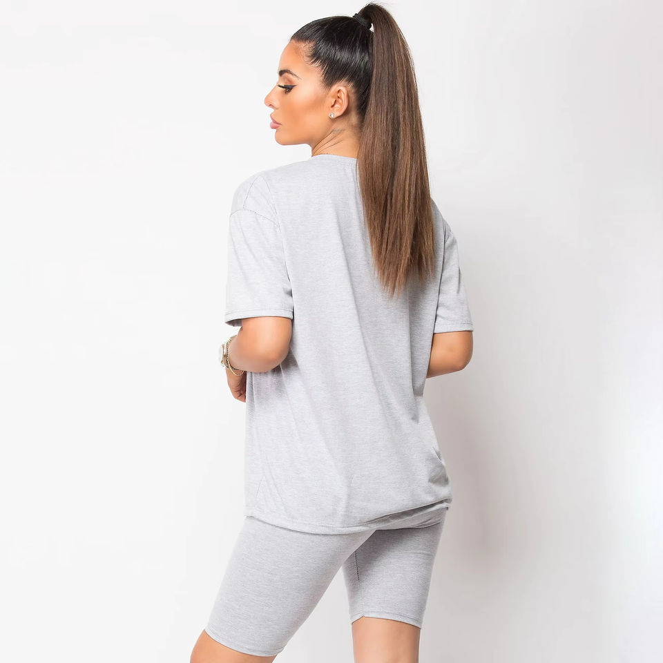 ชุดกีฬาฤดูร้อนของผู้หญิงเสื้อยืดแขนสั้นขนาดใหญ่และกางเกงขาสั้นนักขี่จักรยานสำหรับวิ่ง