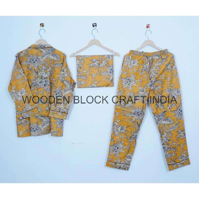 ชุดนอนผ้าฝ้ายสบายๆ สำหรับฤดูร้อนสำหรับผู้หญิง ลายพิมพ์บล็อกด้วยมือ ชุดนอนสำหรับเพื่อนเจ้าสาว มีหลายขนาดสำหรับผู้ใหญ่