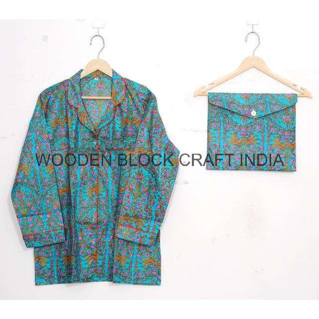 ชุดนอนผ้าฝ้ายสบายๆ สำหรับผู้หญิง ลายพิมพ์บล็อกด้วยมือ ชุดนอนสำหรับเพื่อนเจ้าสาว มีไซส์ถึง 5XL สำหรับผู้ใหญ่