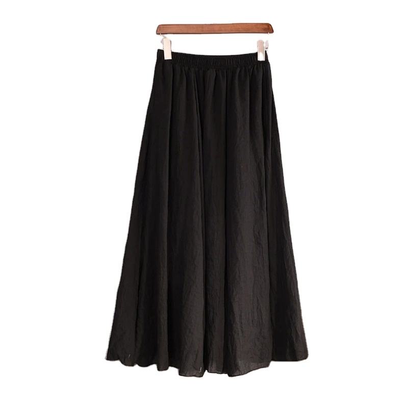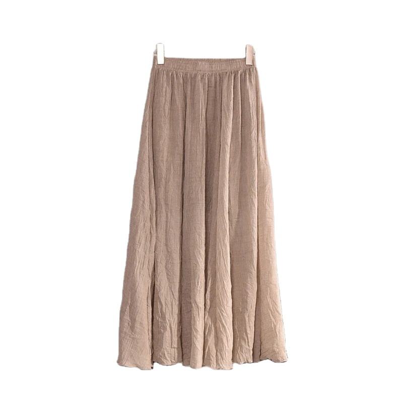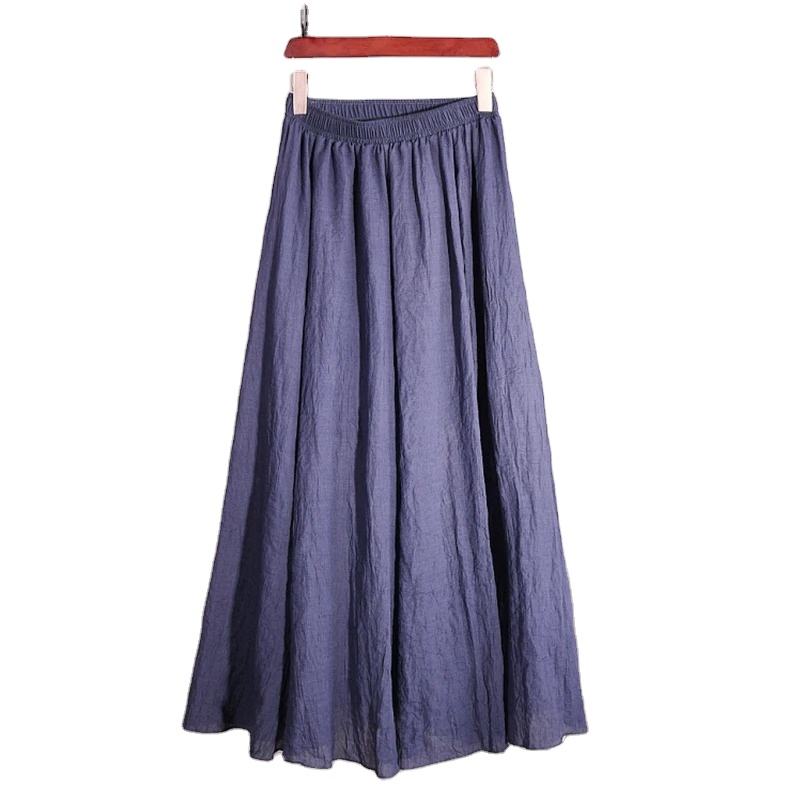 Women's Summer Cotton A-Line Skirt with Elastic Waist Solid Long Girls' Skirt