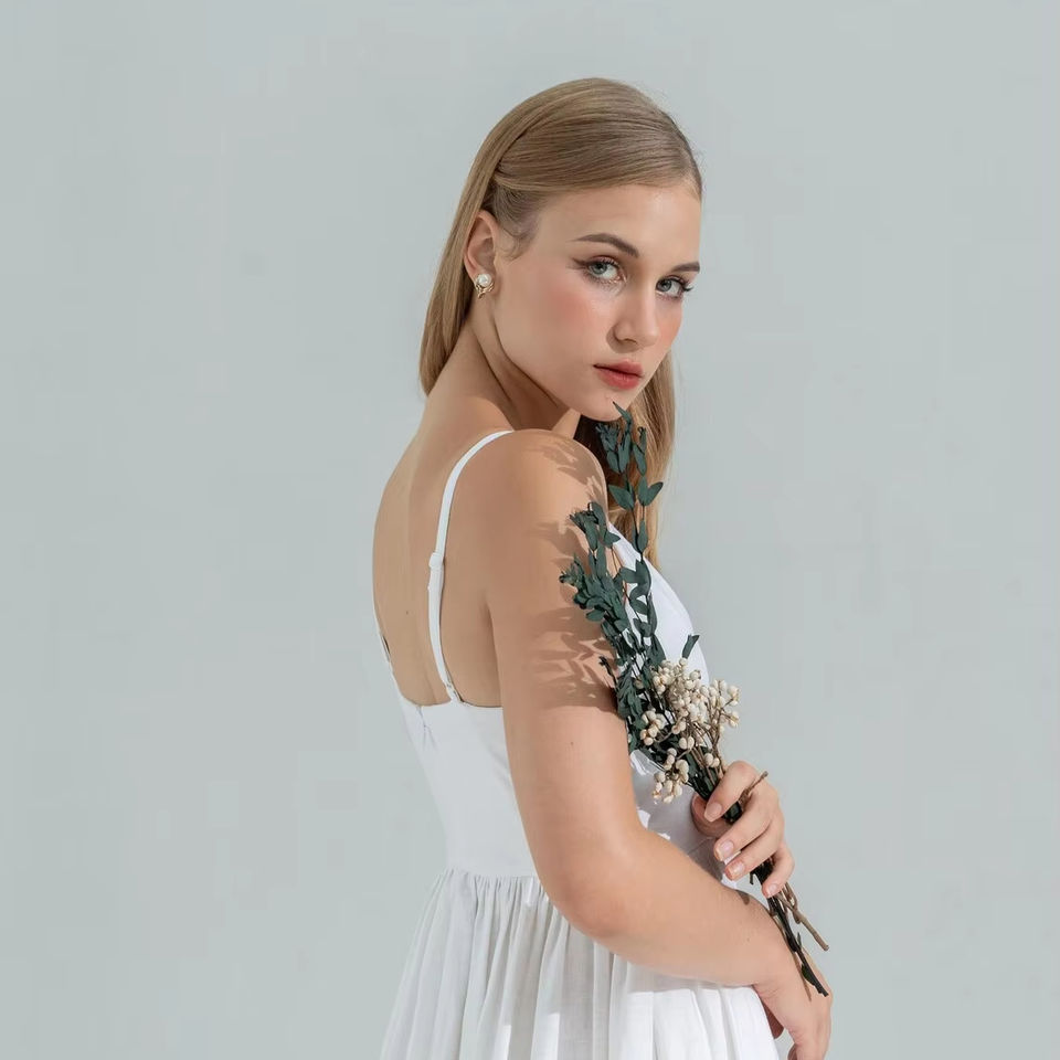 ชุดเดรสผ้าฝ้ายปักลายดอกไม้สำหรับผู้หญิงชุดเดรสผ้าฝ้ายสำหรับฤดูร้อนพร้อมกระดุมตกแต่งทันสมัยเสื้อระบายอากาศได้ดี