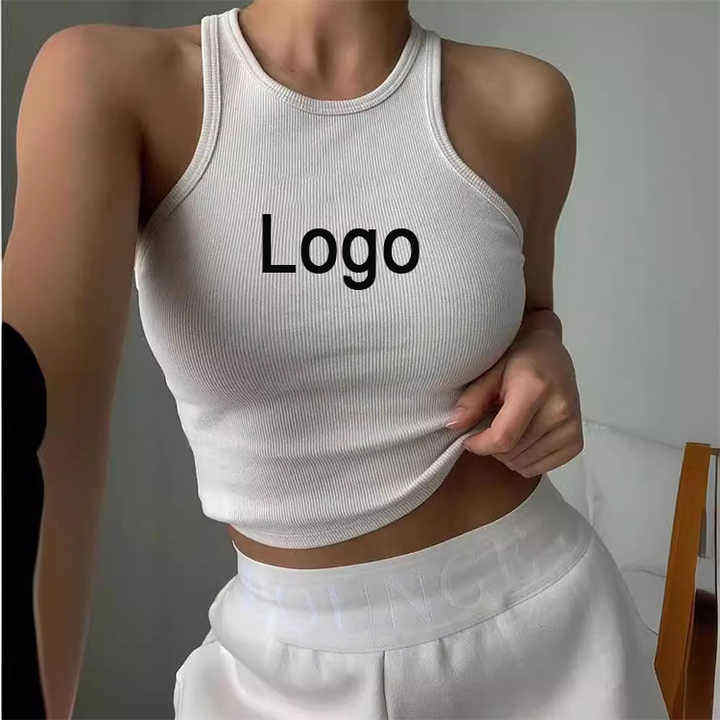 เสื้อกั๊กถักฤดูร้อนของผู้หญิงมีโลโก้ด้านหน้าสไตล์สตรีทแวร์
