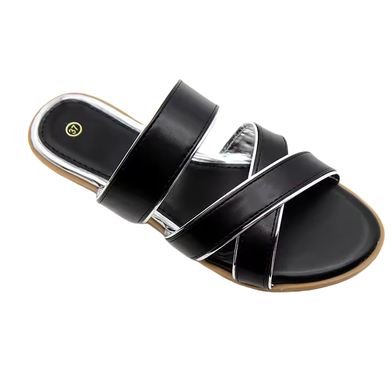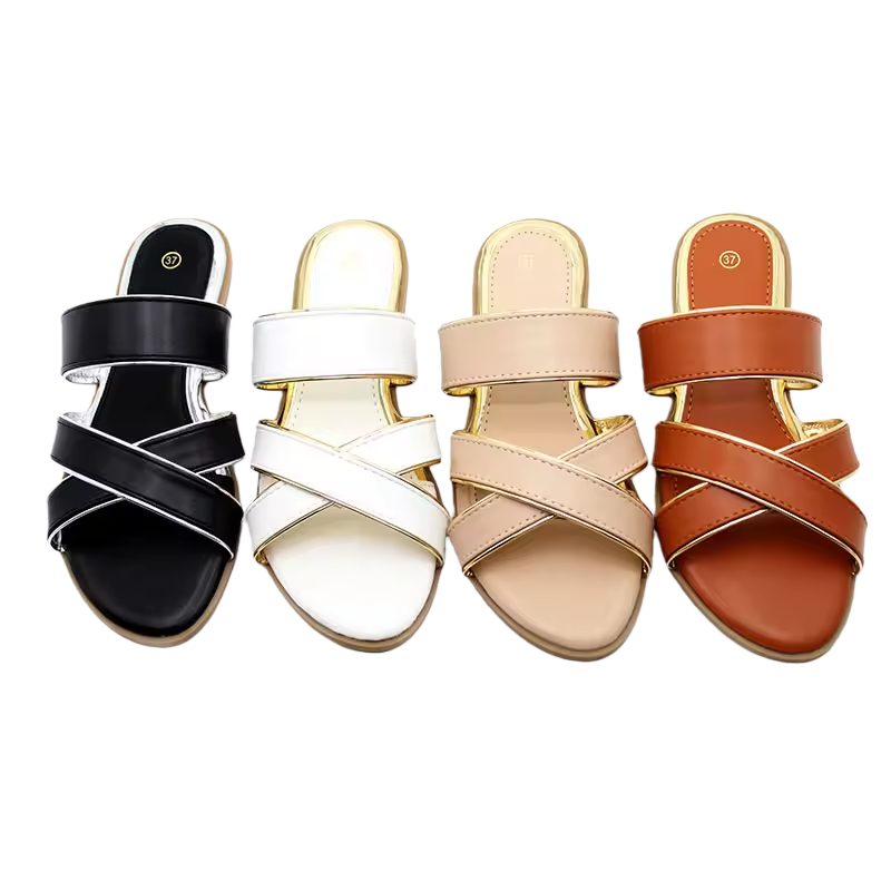 รองเท้าแตะชายหาดลายขวางสำหรับผู้หญิงรองเท้าส้นแบนระบายอากาศได้ดีกันลื่นสำหรับวันหยุดของผู้หญิงในฤดูร้อน
