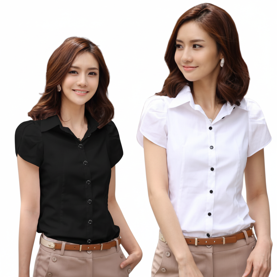 เสื้อสตรีตอนใต้แขนสั้นมีปก LS0630แต่งระบายสำหรับผู้หญิงใส่ได้ทุกวันในฤดูร้อน