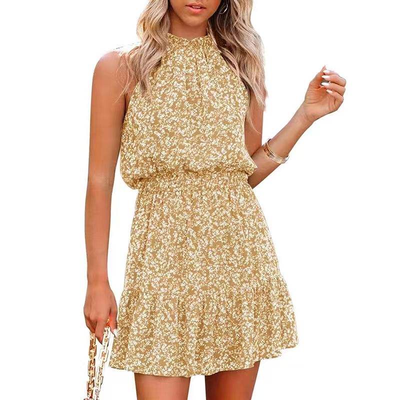 ชุดเดรสกระโปรงจั๊มสูทสำหรับผู้หญิง แขนกุด สายคล้องไหล่เส้นเล็ก คอวี ดีไซน์จีบระบาย เหมาะสำหรับฤดูร้อน